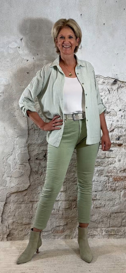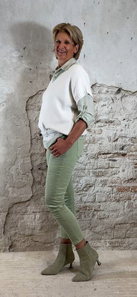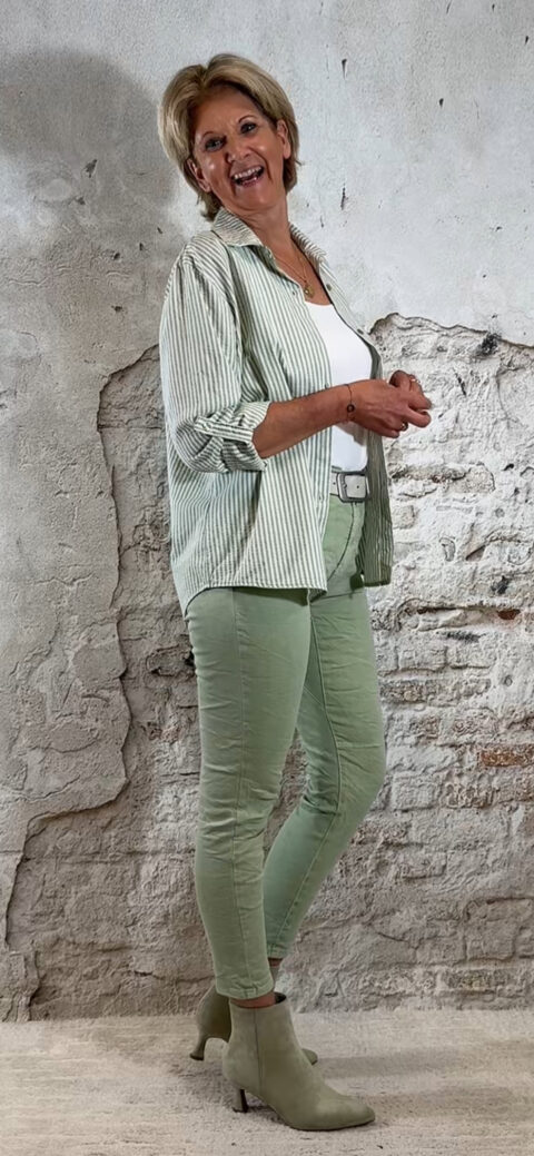 • MC-8202-70. Jeans elastische taille lindegroen