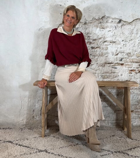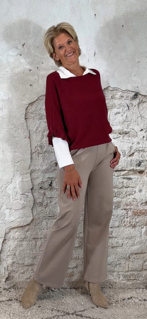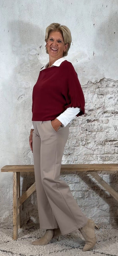 Verkrijgbaar in de kleuren: zwart, donkerblauw, khaki, bordeaux, bruin, wolwit, zand, beige, camel, grijs, taupe, steel.