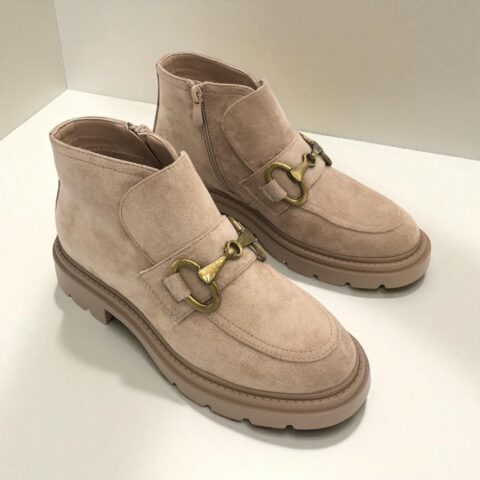 Deze stijlvolle suedine laarsjes in een warme zandkleur zijn een perfecte mix van stoer en chic. Het goudkleurige bit-detail bovenop geeft de laarsjes nét dat beetje extra klasse, terwijl de stevige zool en praktische rits aan de binnenkant zorgen voor optimaal draagcomfort. De laarsjes vallen op maat en zijn verkrijgbaar van maat 36 t/m 41.