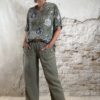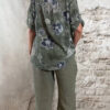 De halve knoopsluiting met een klein boordje en v-halsje geeft de blouse een zachte en vrouwelijke uitstraling. De stof voelt licht en comfortabel aan, perfect voor warmere dagen.