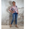 De blouse valt iets langer aan de achterkant dan aan de voorkant, wat zorgt voor een mooie en flatterende pasvorm. De 3/4 mouwen hebben een mouwophouder, waardoor je hem speels kunt dragen.