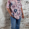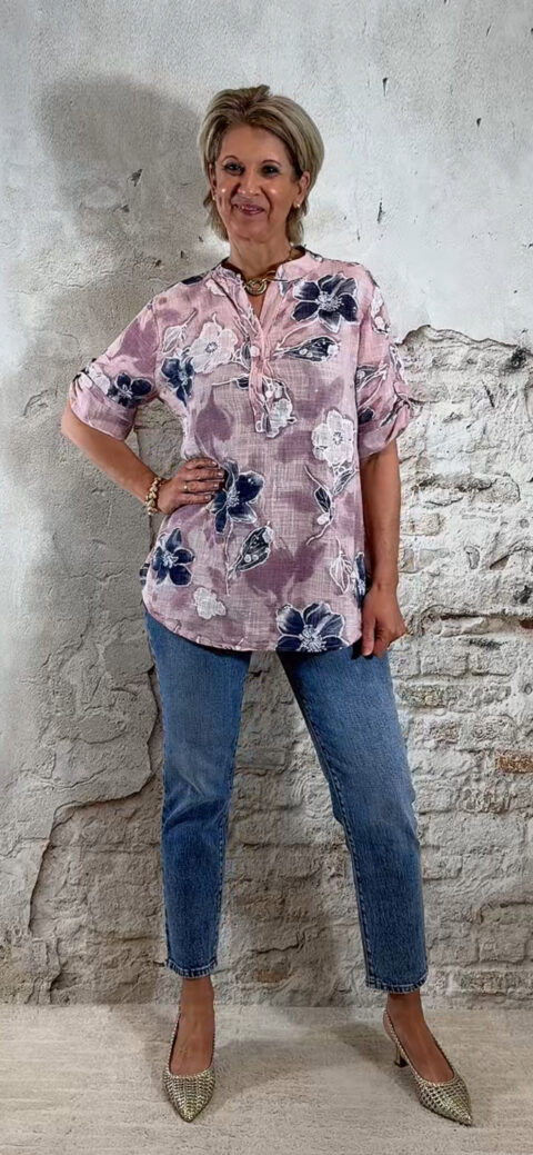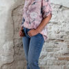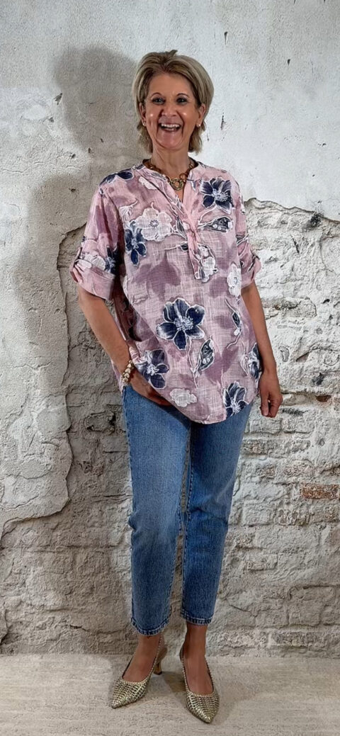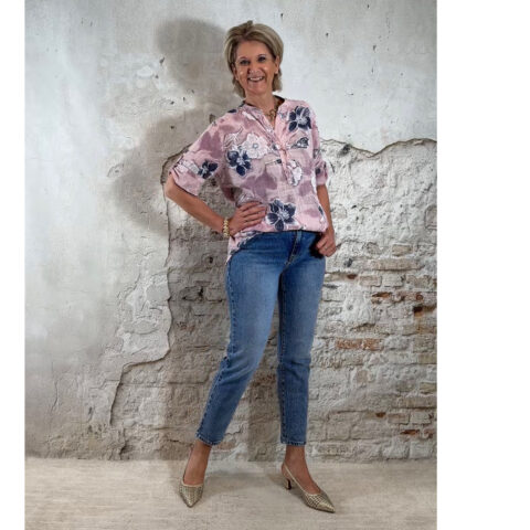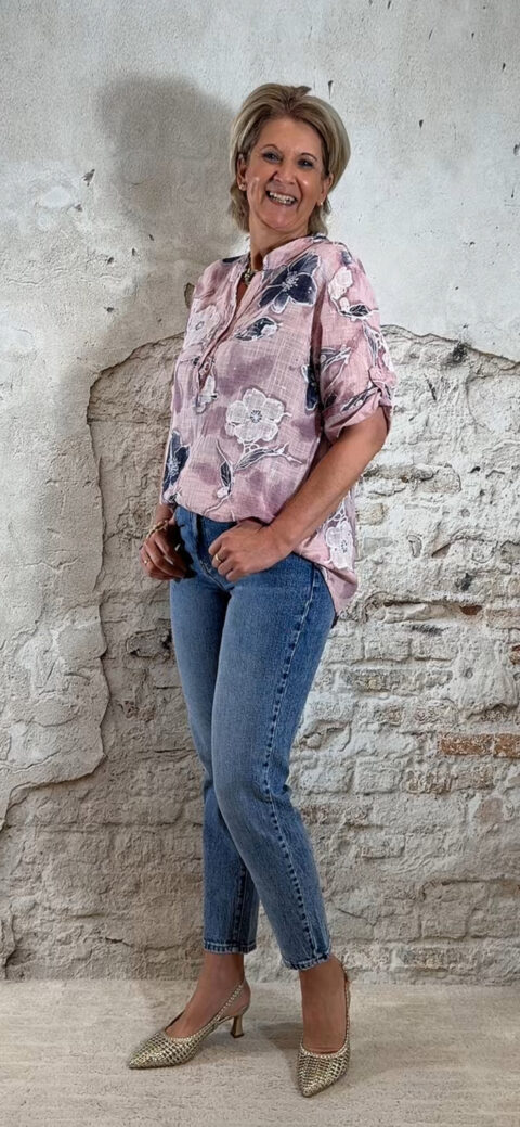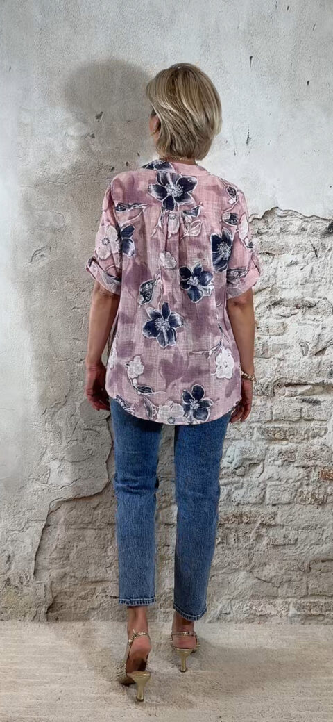 Cotton linnen blouse flower oudroze Bibi