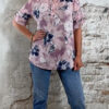 De halve knoopsluiting met een klein boordje en v-halsje geeft de blouse een zachte en vrouwelijke uitstraling. De stof voelt licht en comfortabel aan, perfect voor warmere dagen.