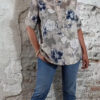 De blouse valt iets langer aan de achterkant dan aan de voorkant, wat zorgt voor een mooie en flatterende pasvorm. De 3/4 mouwen hebben een mouwophouder, waardoor je hem speels kunt dragen.