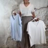 Verkrijgbaar in de kleuren: lichtblauw, beige en off-white