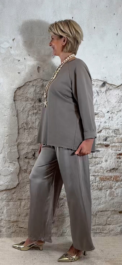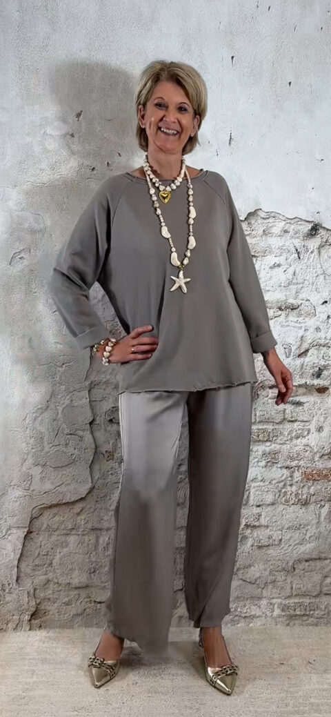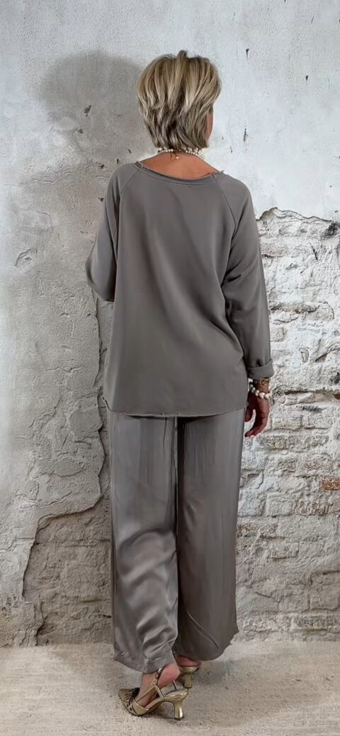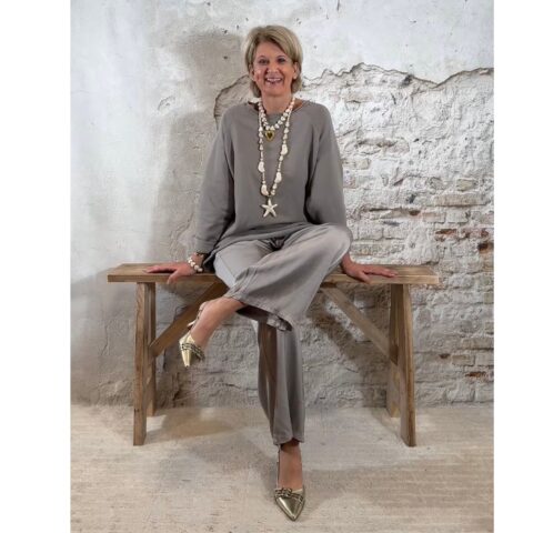 Door de neutrale taupekleur is de sweater eenvoudig te combineren met verschillende broeken, rokken of jeans. Het is een fijne basic die je zowel casual thuis als onderweg kunt dragen.
