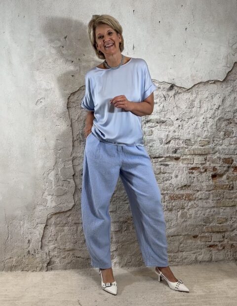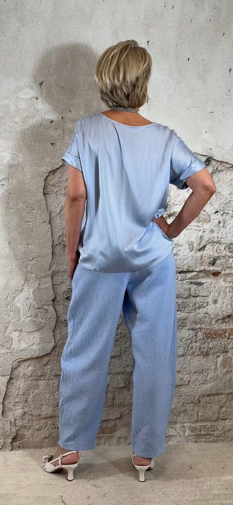 Dit shirt combineert prachtig met de Elza mousseline stitch broek en het bijpassende jasje, maar staat ook mooi op een jeans of rok voor een stijlvolle dagelijkse outfit.