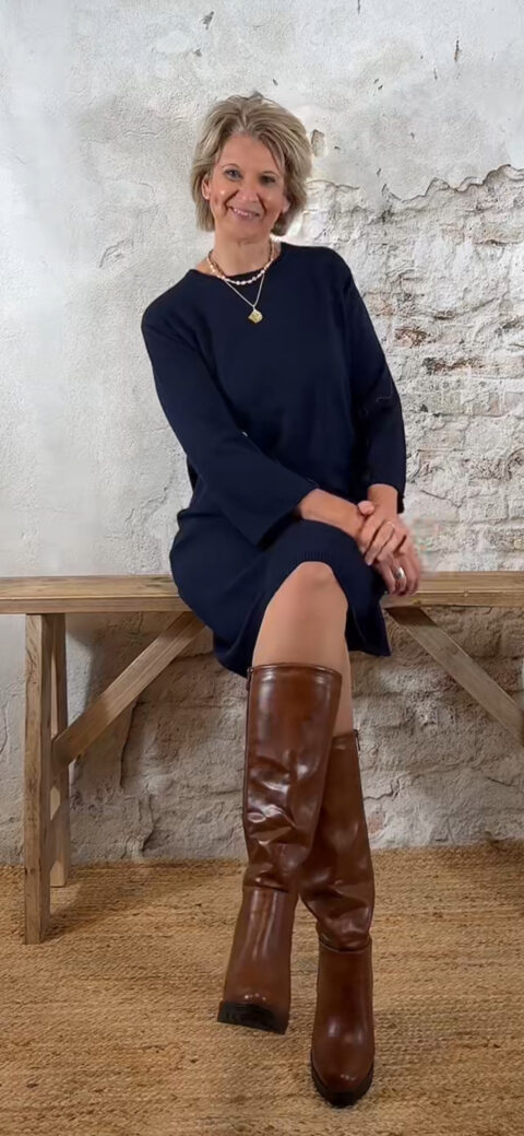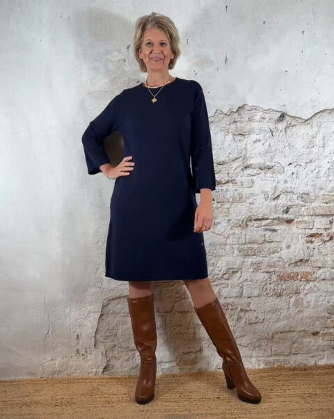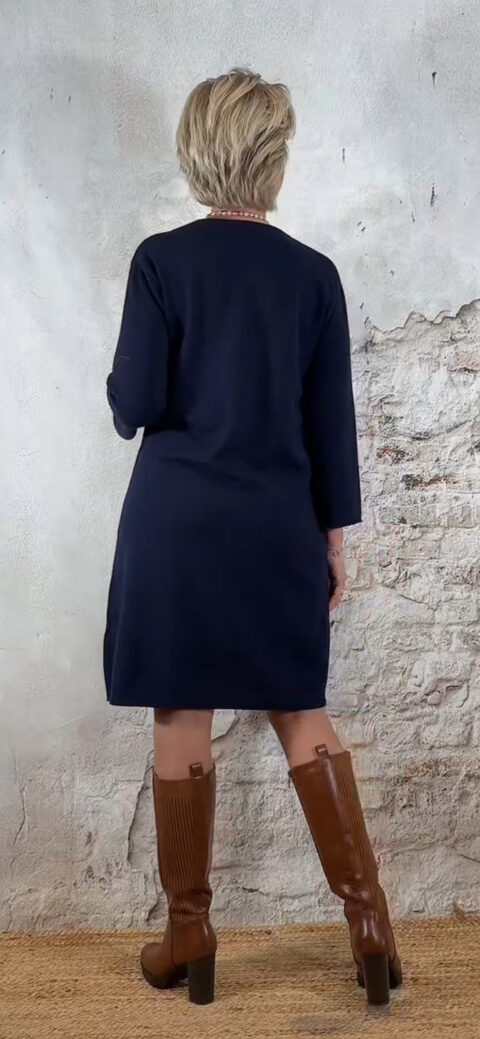 De Elza Knit Dress met knopen in donkerblauw is zo’n zachte, stijlvolle jurk waar je altijd op terug kunt vallen — vrouwelijk, cozy en prachtig van kleur.