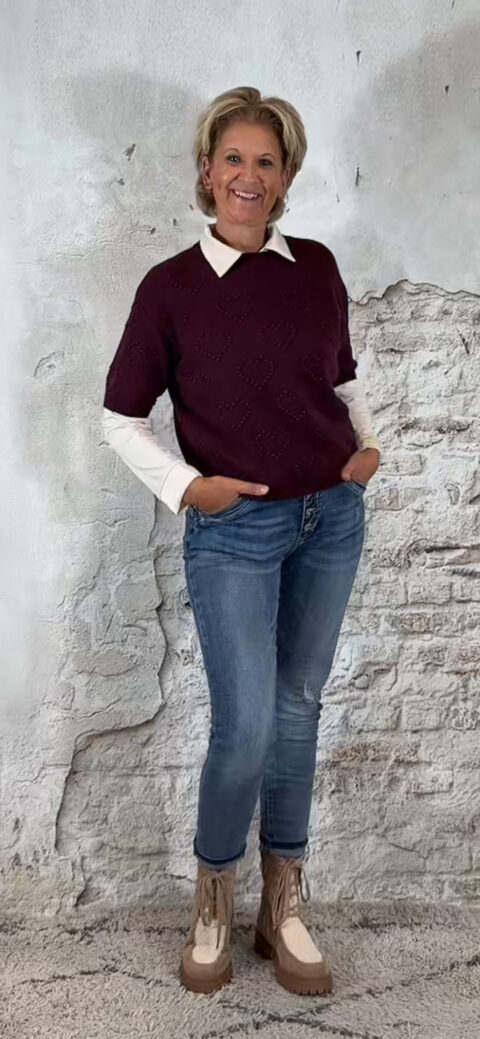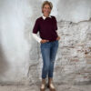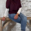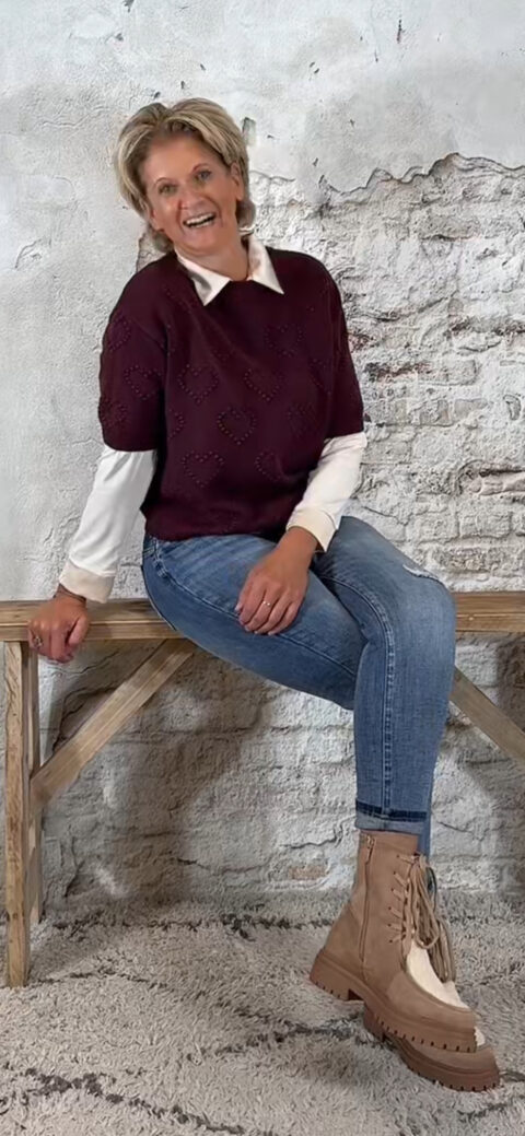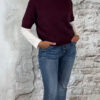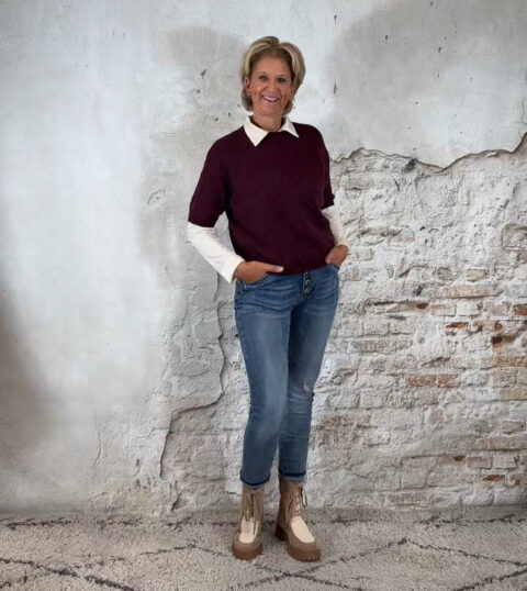 De trui heeft een vrouwelijk en tijdloos model, waardoor hij makkelijk te combineren is op een jeans, rok of onder een jasje.