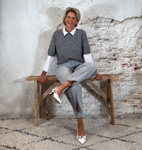 De trui heeft een vrouwelijk en tijdloos model, waardoor hij makkelijk te combineren is op een jeans, rok of onder een jasje.Prijs: €39,95