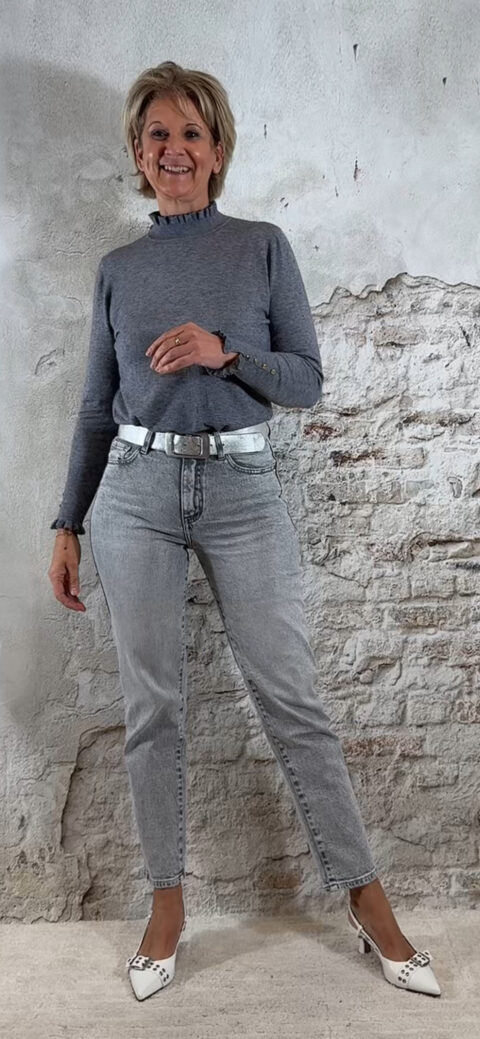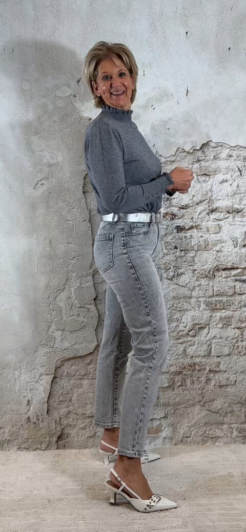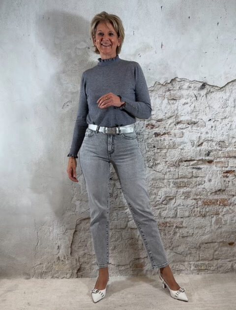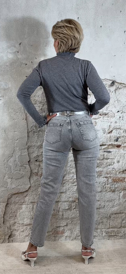 De Elza slim momfit jeans in lichtgrijs heeft een stoere wassing en een moderne, iets kortere lengte: precies zoals een momfit hoort te vallen. Dit model zit tussen een slimfit en een momfit in — de pijpen zijn iets losser voor een relaxed shape, maar lopen onder toch slanker toe waardoor je een mooie, vrouwelijke lijn krijgt.