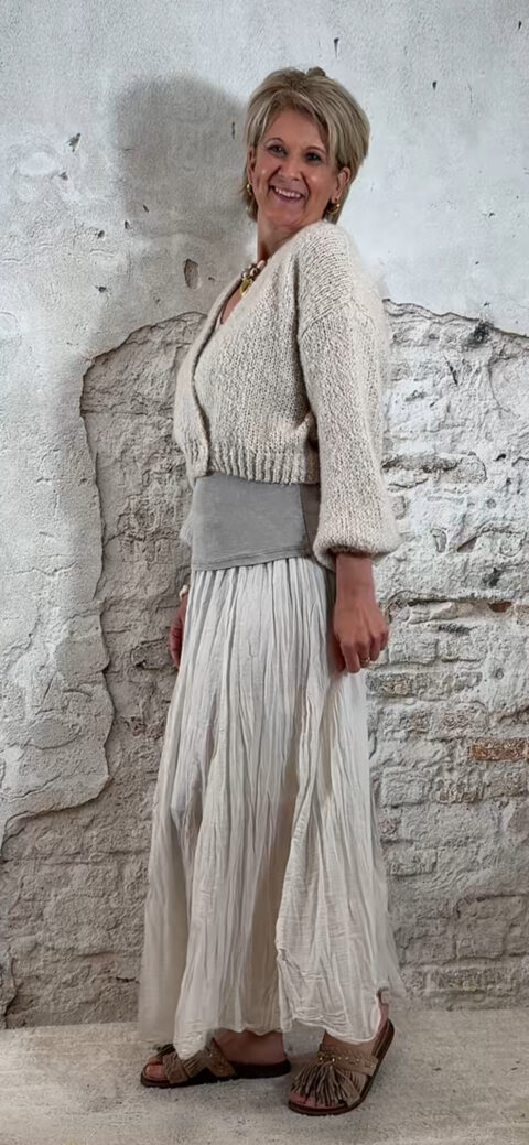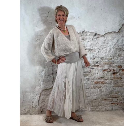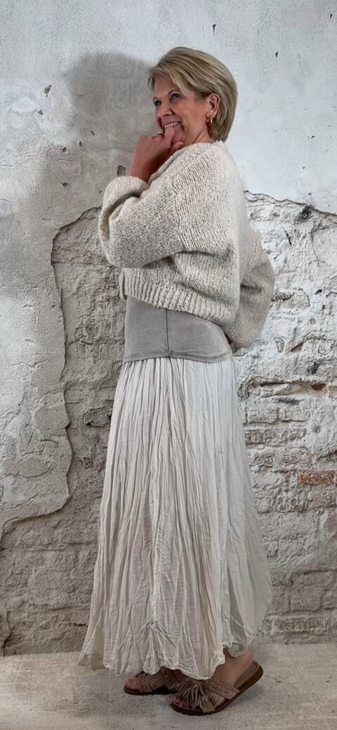 Dit vest combineert prachtig met bijvoorbeeld de Ailan crinkle rok in beige of taupe, waardoor je een elegante en vrouwelijke outfit creëert.