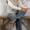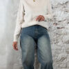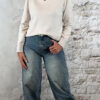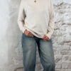 De dikkere stof bevat een glinsterend draadje dat zachtjes uitsteekt en het effect geeft van bevroren ijskristalletjes op de trui. Zonder overdaad, maar met precies genoeg sprankeling om elke outfit een luxueuze winterlook te geven.
