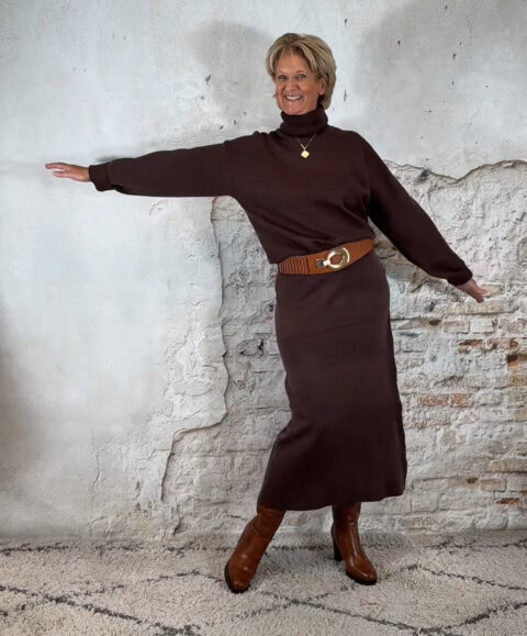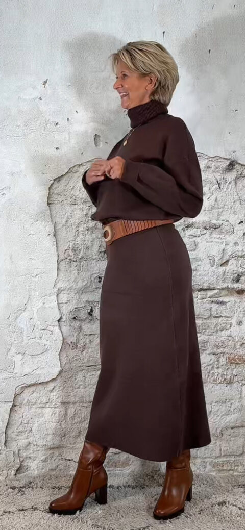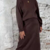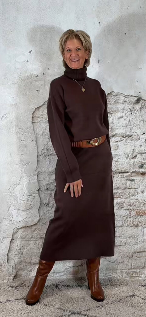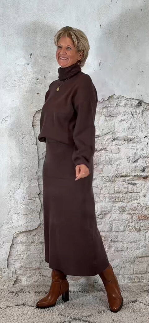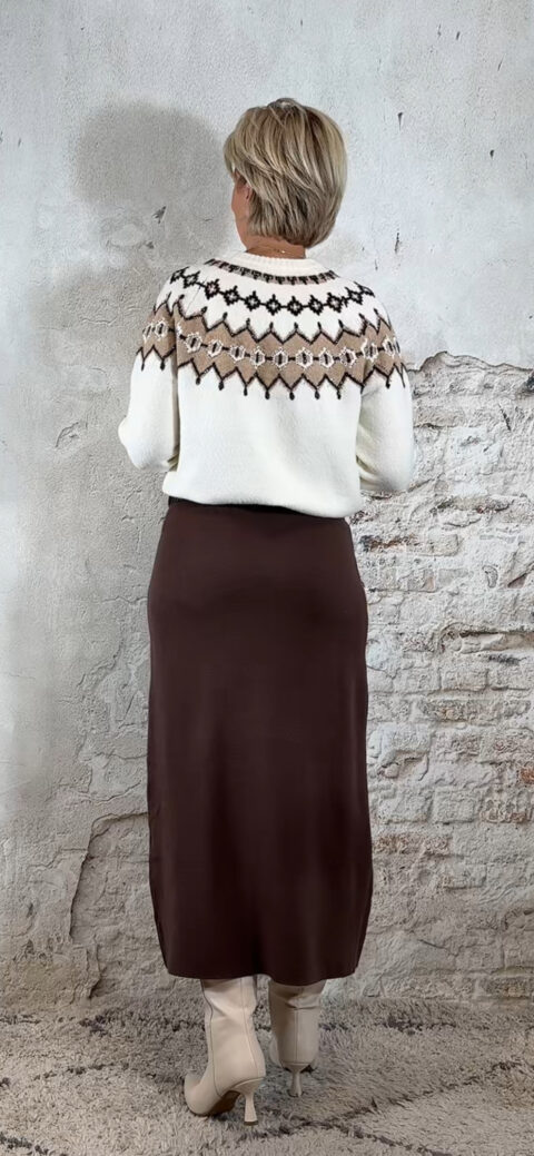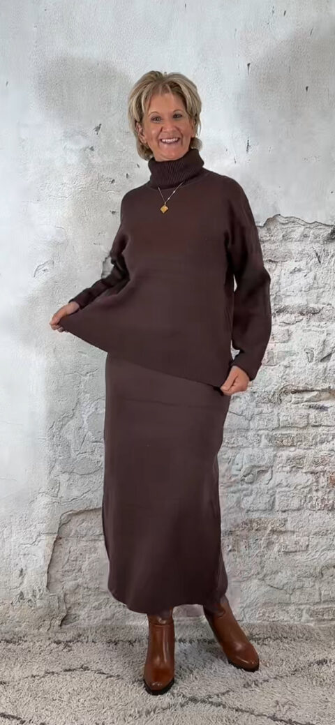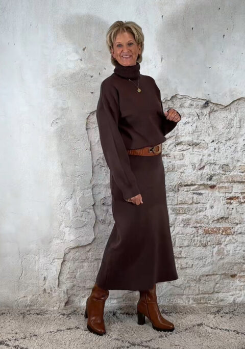 144522. LAATSTE 2! Evy gebreide rok bruin, combi set mogelijk!