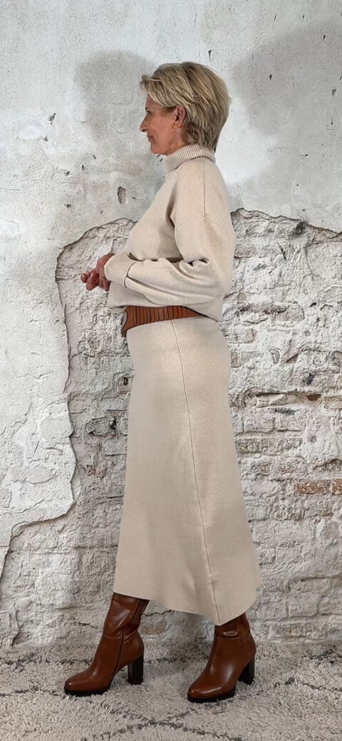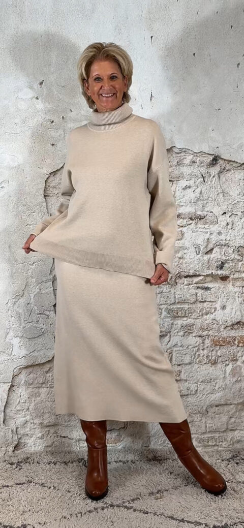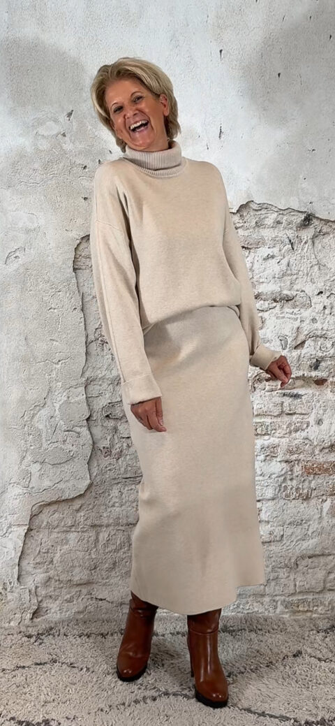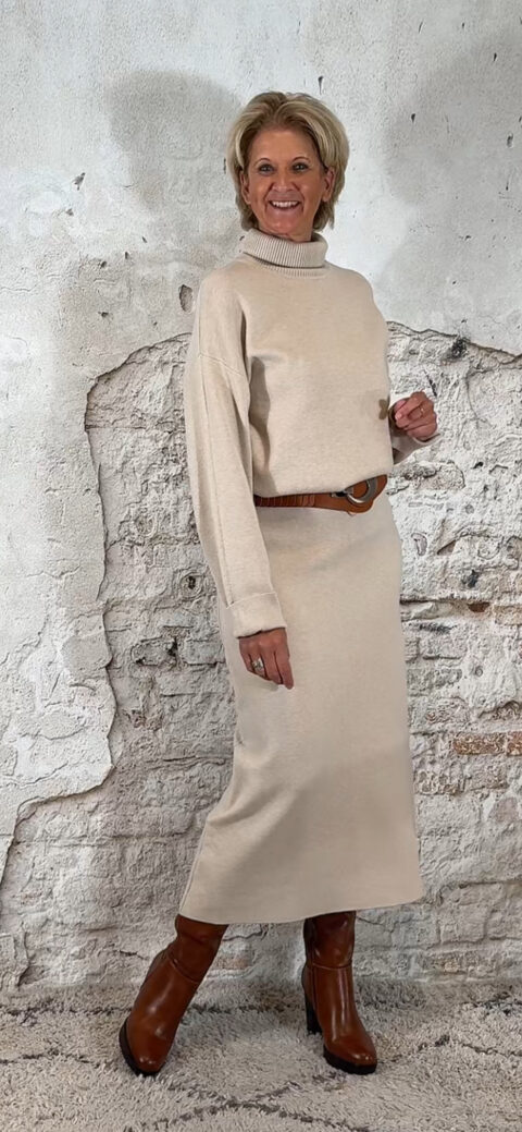 De Evy gebreide rok is een tijdloos en stijlvol item dat je zowel los kunt dragen als combineren met de bijpassende coltrui voor een complete set. Het rechte model zorgt voor een mooie, slanke lijn en maakt de rok makkelijk te combineren met verschillende stijlen.