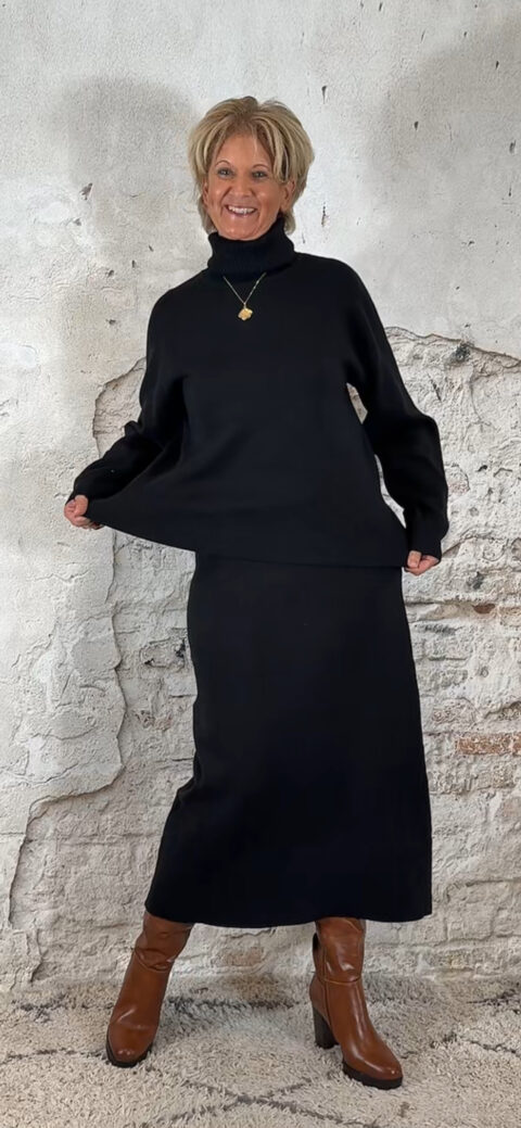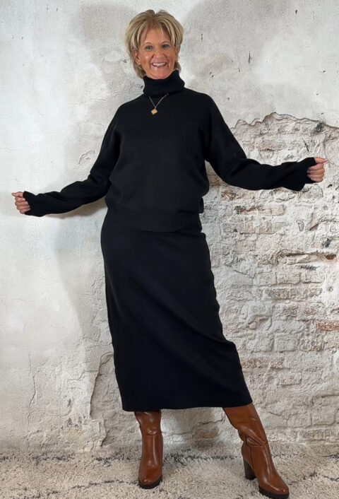 De Evy gebreide rok is een tijdloos en stijlvol item dat je zowel los kunt dragen als combineren met de bijpassende coltrui voor een complete set. Het rechte model zorgt voor een mooie, slanke lijn en maakt de rok makkelijk te combineren met verschillende stijlen.