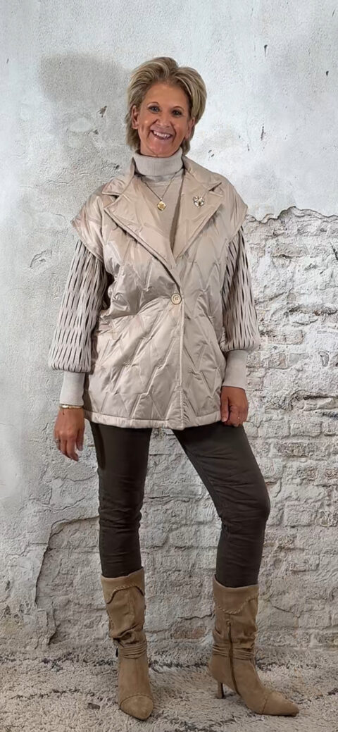 Deze gewatteerde bodywarmer in blazer-stijl is een unieke combinatie van chic en casual.