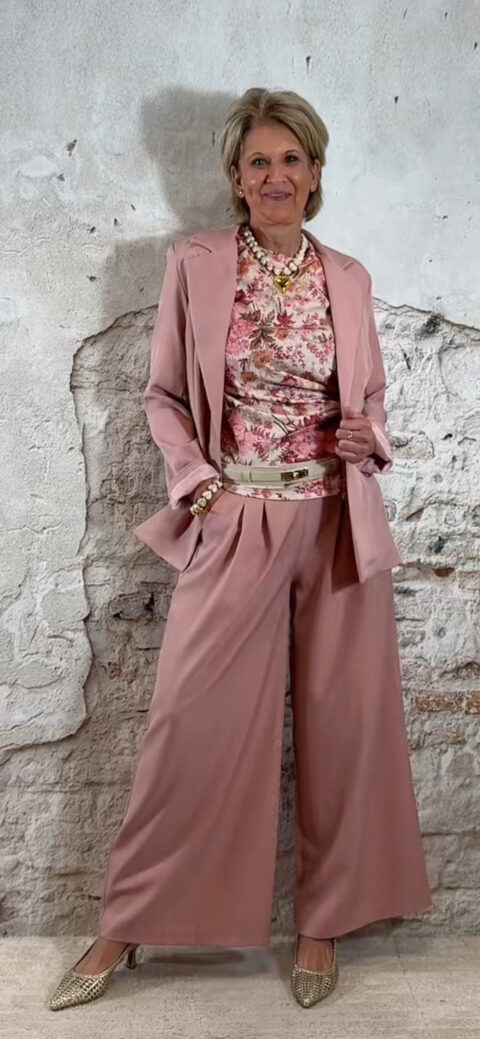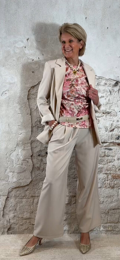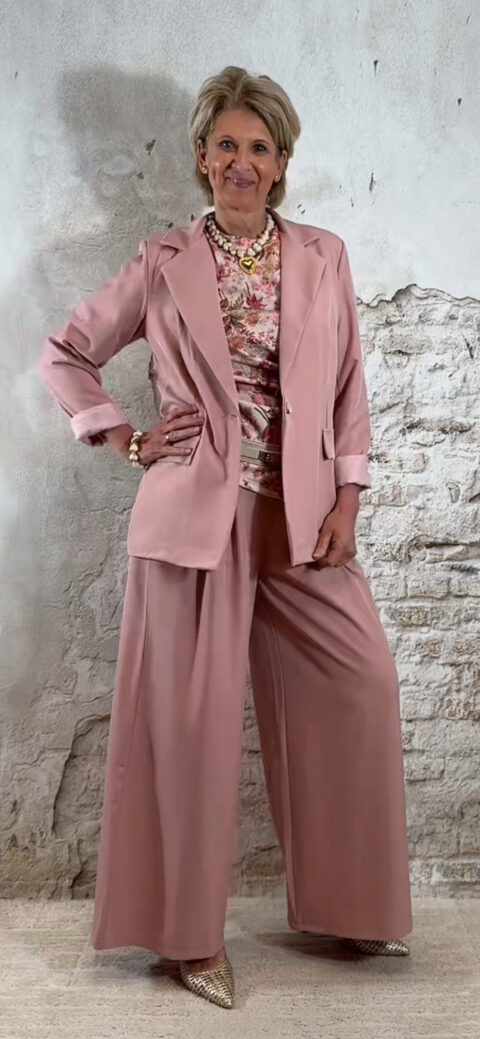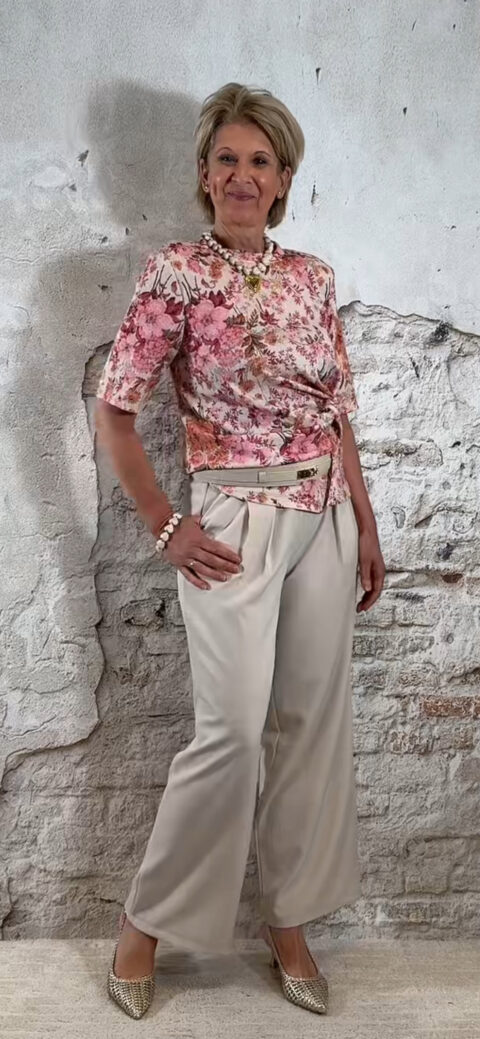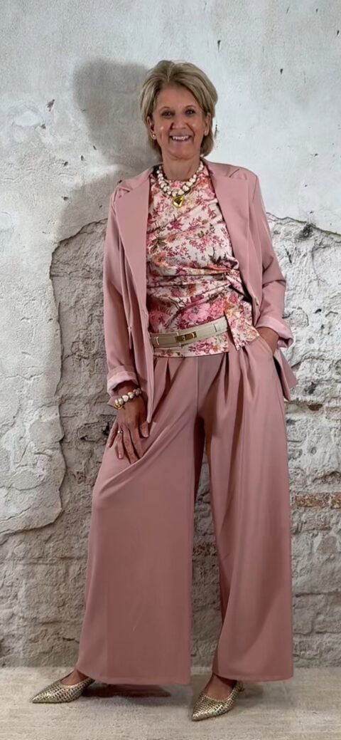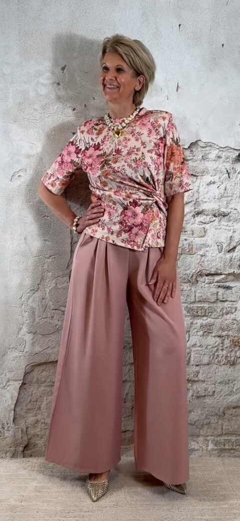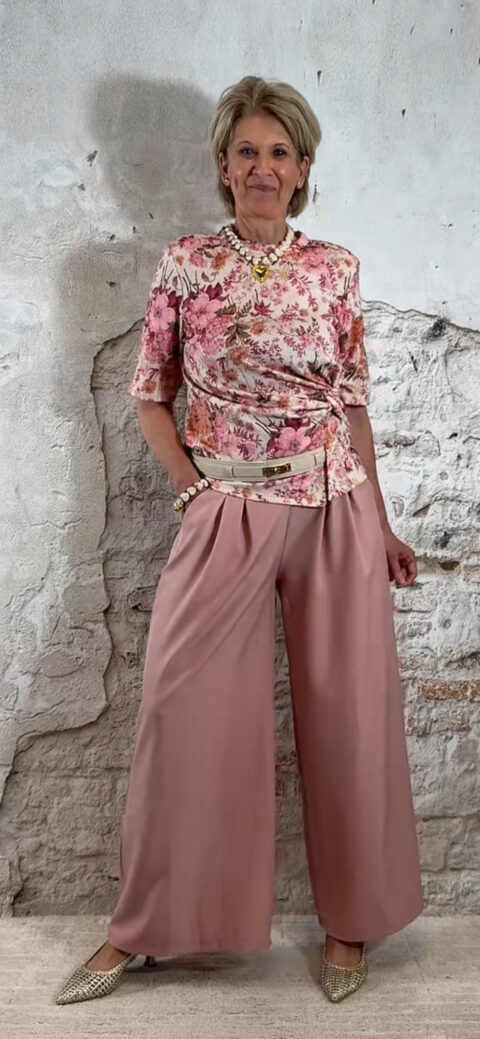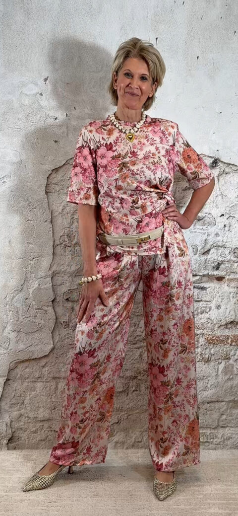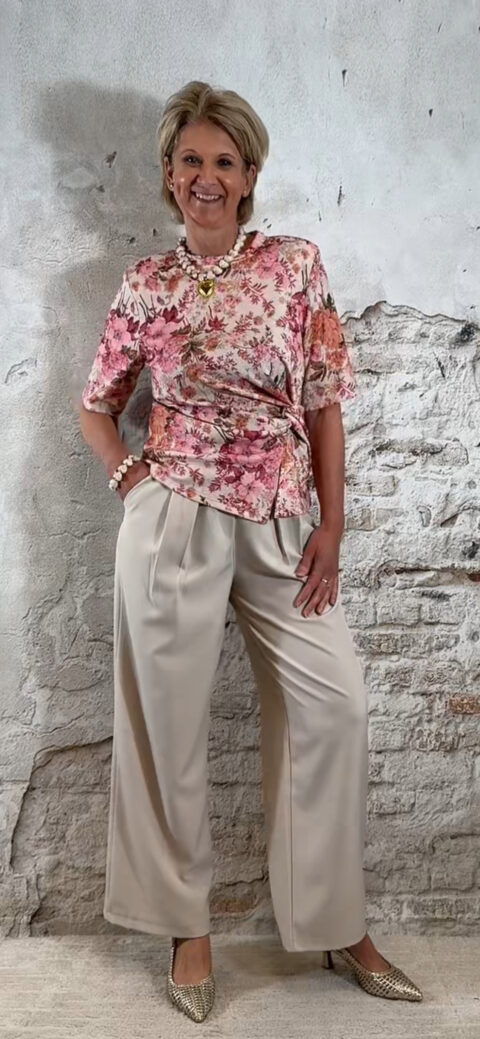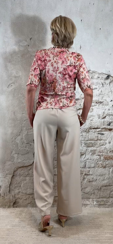 Extra leuk: combineer het shirt met een riem zoals op de foto voor een extra gestylde look. Ook perfect te combineren met de bijpassende broek of de Evy bandplooi broeken in roze of beige, en natuurlijk met een bijpassende blazer.