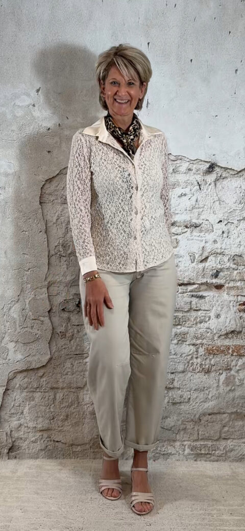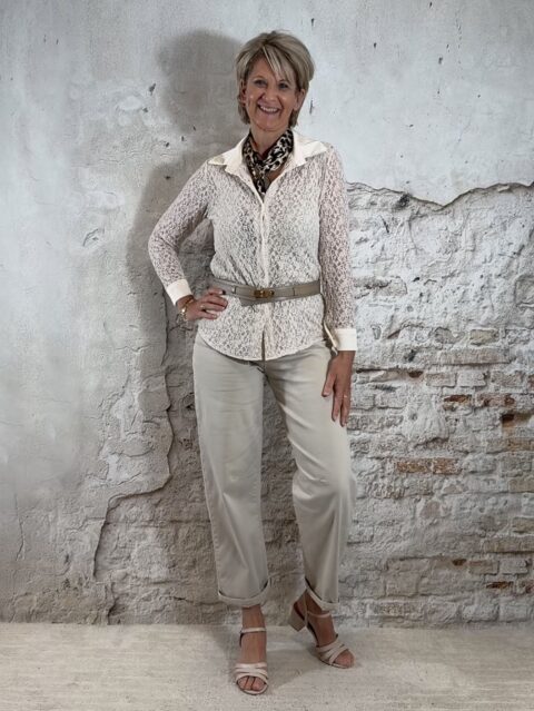 De Evy lace blouse in beige is vrouwelijk, verfijnd en eindeloos combineerbaar. Het zachte kant geeft deze blouse een romantische uitstraling, terwijl de beige tint zorgt voor een warme, rustige basis in je outfit. Perfect als je houdt van subtiele elegantie.