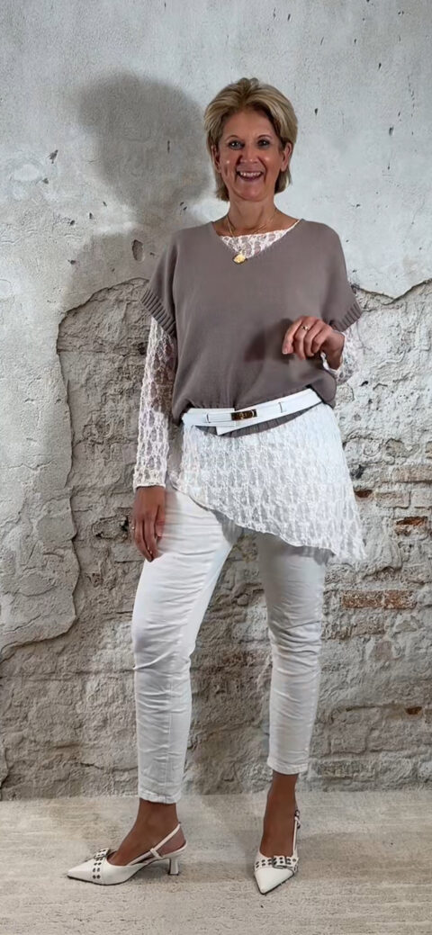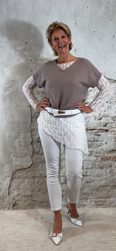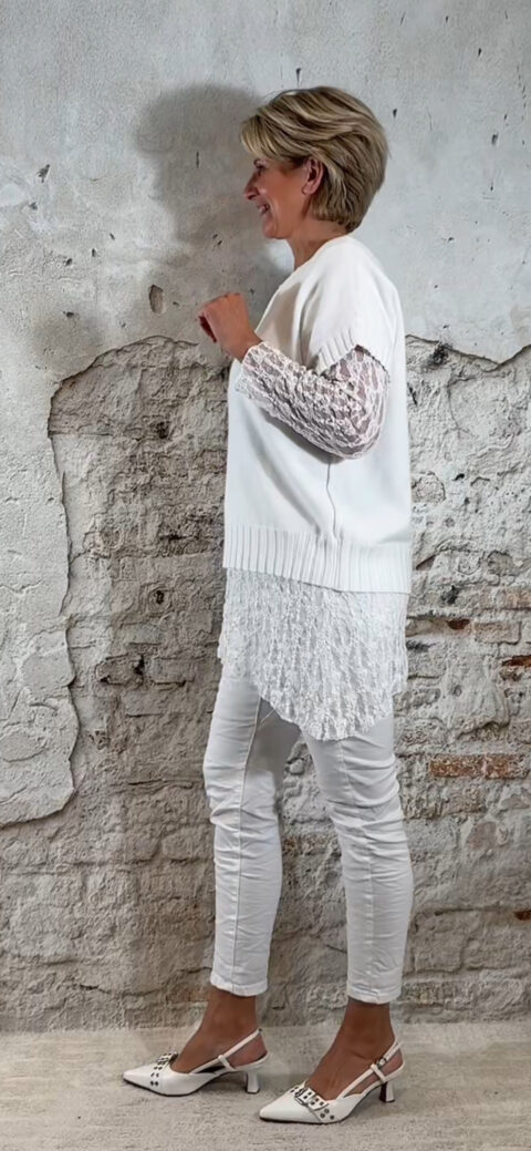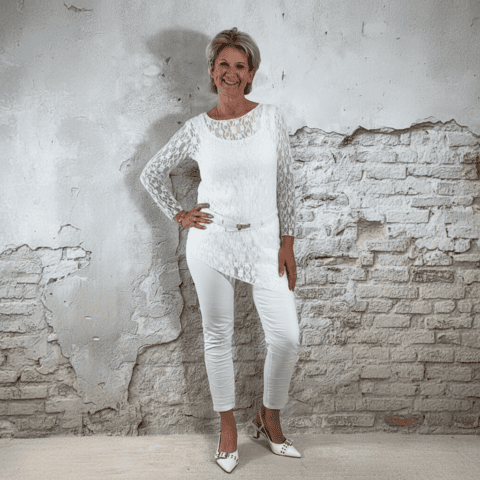 De Evy lace longsleeve asy in wit is zo’n item dat je outfit direct een vrouwelijke upgrade geeft. Deze kanten top loopt speels schuin weg in een punt, waardoor hij net even anders valt dan een standaard longsleeve. Subtiel, elegant en perfect om mee te layeren.