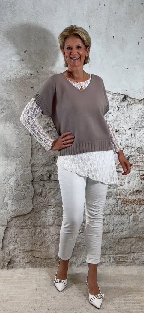 Draag haar onder een trui voor een speelse laagjeslook of combineer haar solo met een jeans of pantalon voor een vrouwelijke, frisse uitstraling.