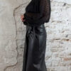 Zwarte leatherlook maxi rok met overslag en strikdetail. Volledig dichtgestikt, dus valt nooit open. Verkrijgbaar in S/M (36-38) en M/L (40-42).