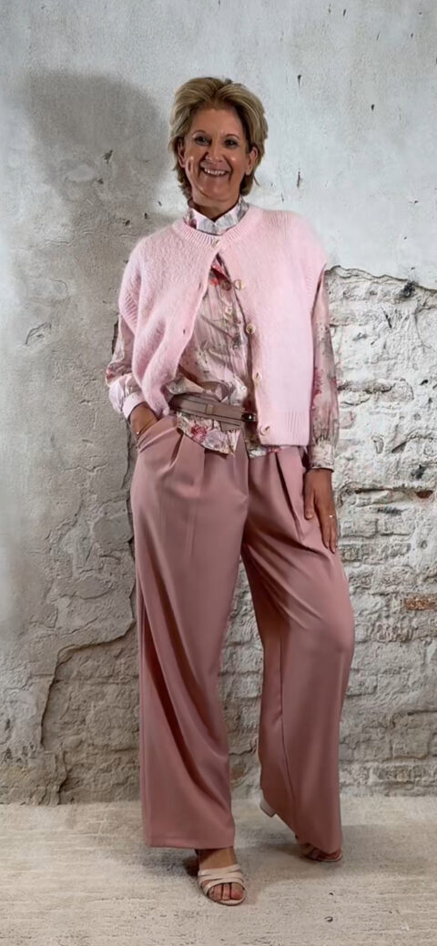 Het Evy mouwloos vest in roze is een zacht, vrouwelijk item met een luxe uitstraling. De warme roze tint geeft je outfit meteen een frisse en elegante touch.