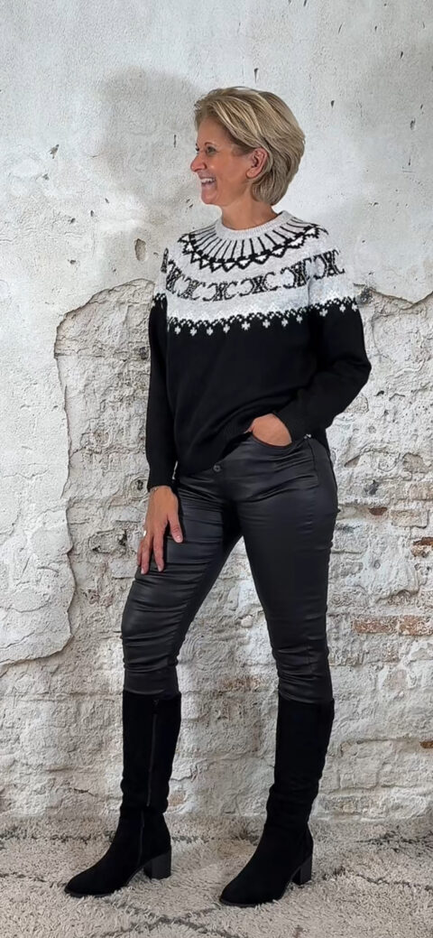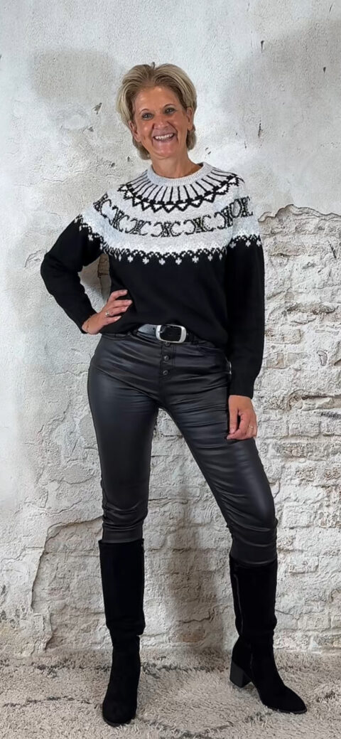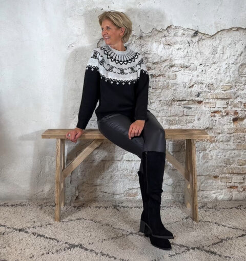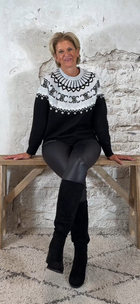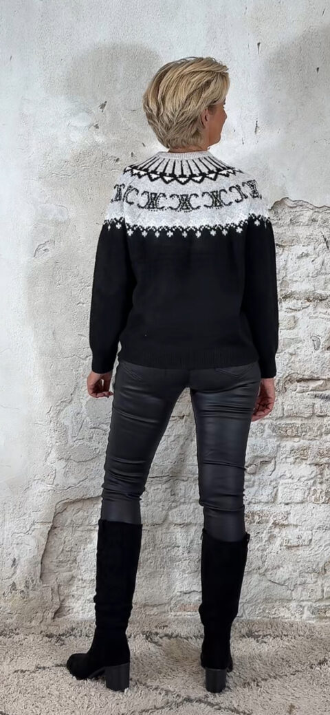 144527. LAATSTE 2! Evy Noors-patroon trui zwart/grijs