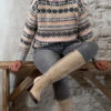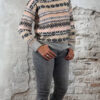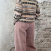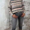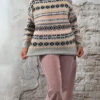De bovenkant is versierd met een stijlvolle Noorse print, wat de trui een tijdloze, winterse uitstraling geeft.