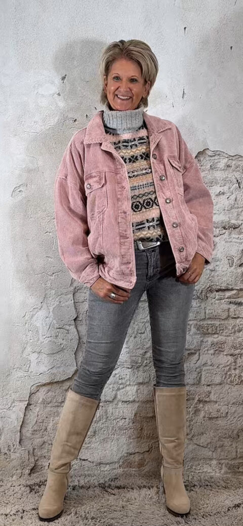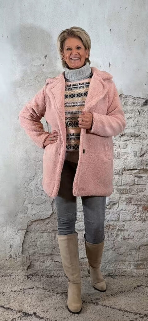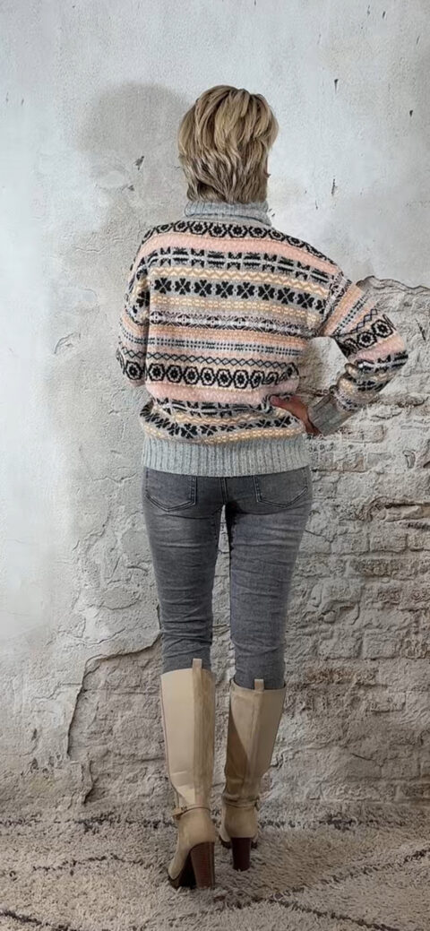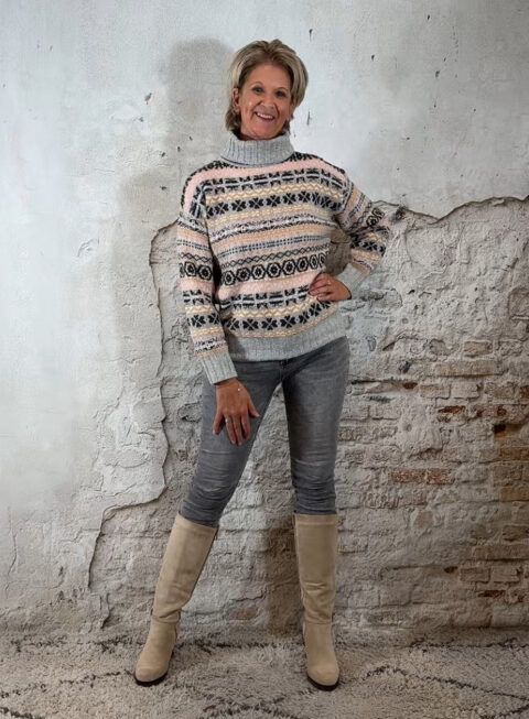 147855. Evy nordic coltrui grijs/roze (14 oktober weer op voorraad, je kunt al bestellen)