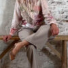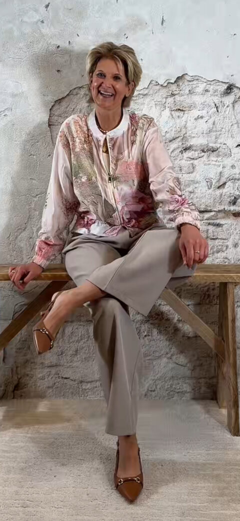 De Evy pantalon met wijde bandplooi in zand is een elegante en comfortabele broek met een moderne uitstraling. Het wijde model valt soepel langs het been en geeft een mooie, geklede look zonder in te leveren op draagcomfort.