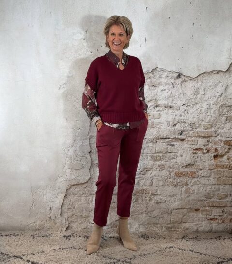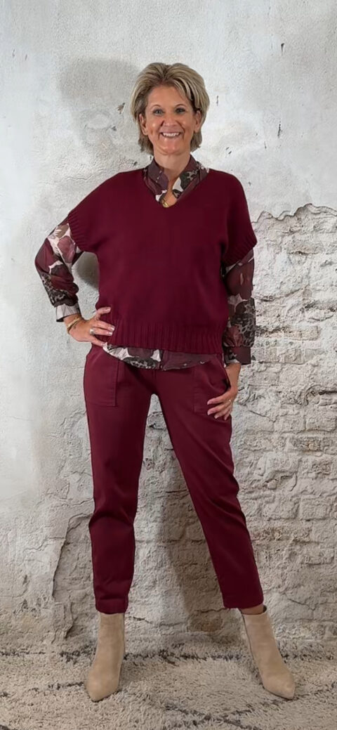 138834. Evy pullover kapmouw v-hals bordeaux (14 oktober weer op voorraad, je kunt al bestellen)