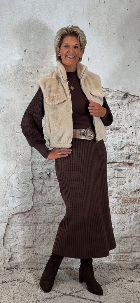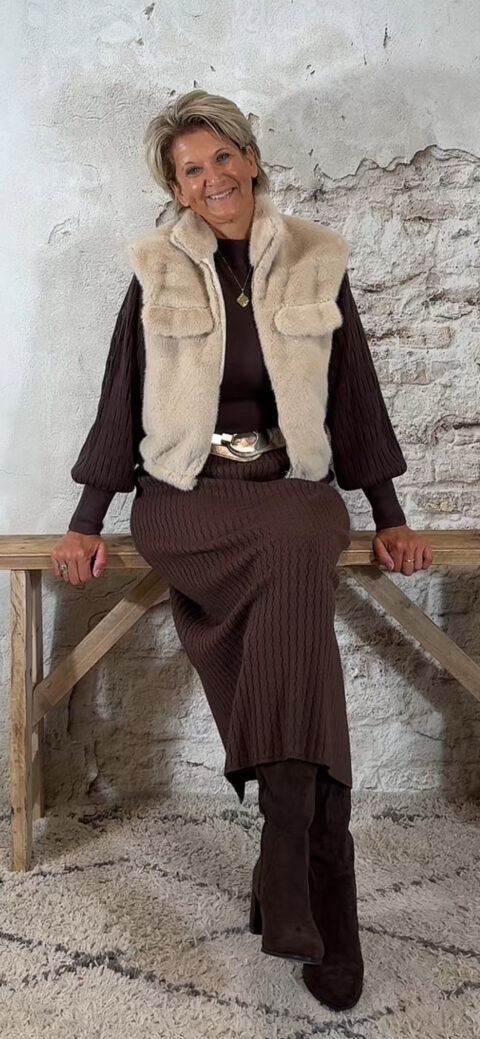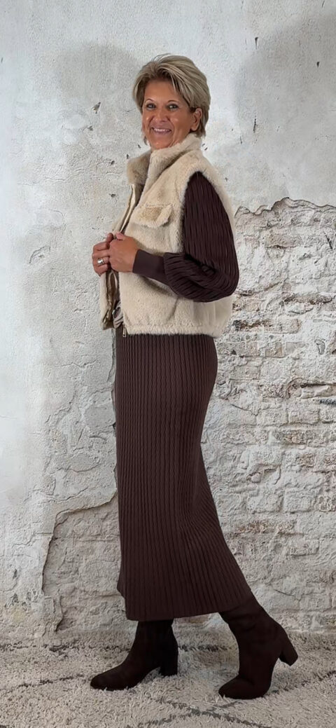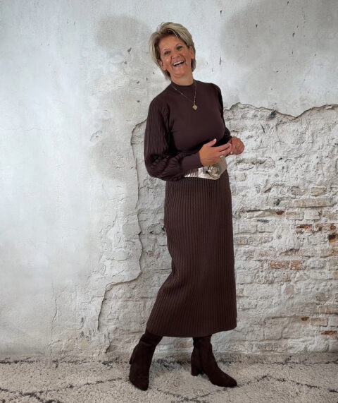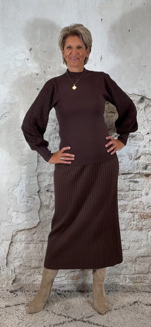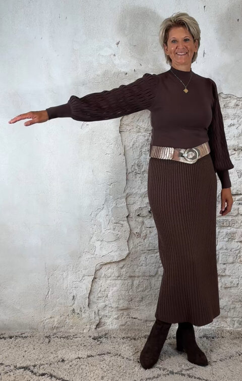 138929. Evy pullover mesh mouw bruin