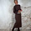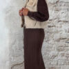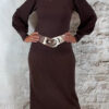 Bruine pullover met turtle hals, lange manchetten en sierlijke mesh mouwen. Stijlvol, vrouwelijk en comfortabel. One size 36-40.
