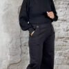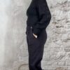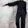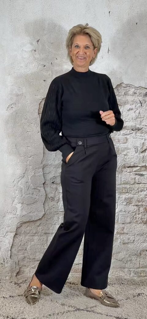 Zwarte pullover met turtle hals, lange manchetten en sierlijke mesh mouwen. Stijlvol, vrouwelijk en comfortabel. One size 36-40.