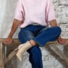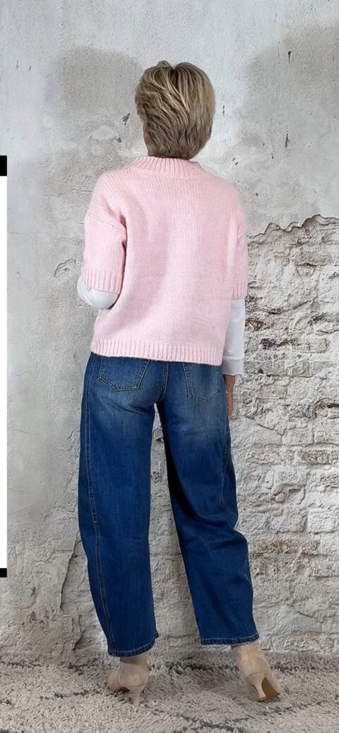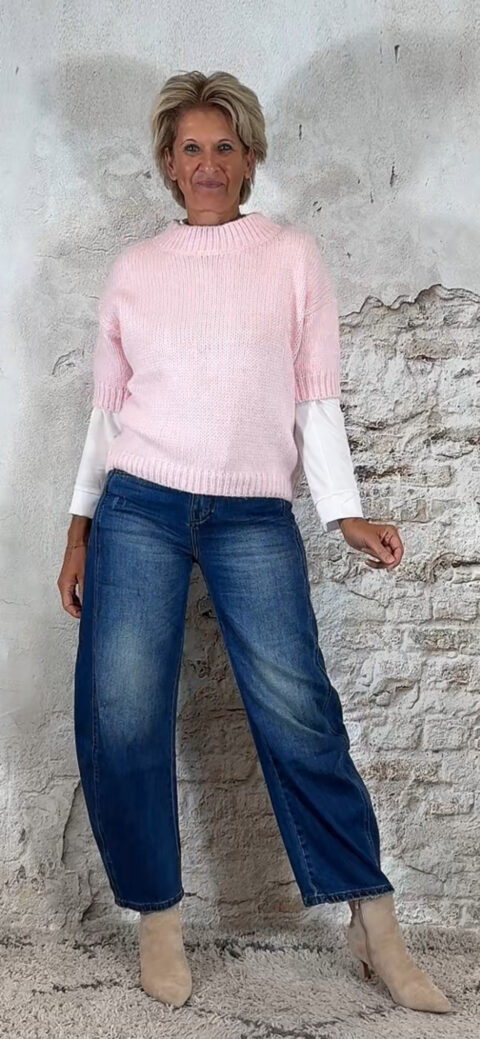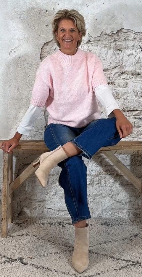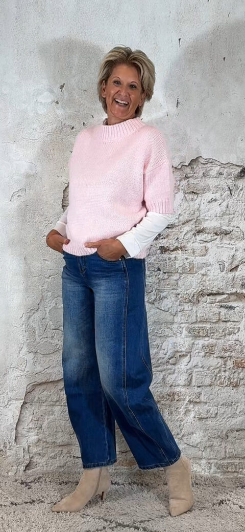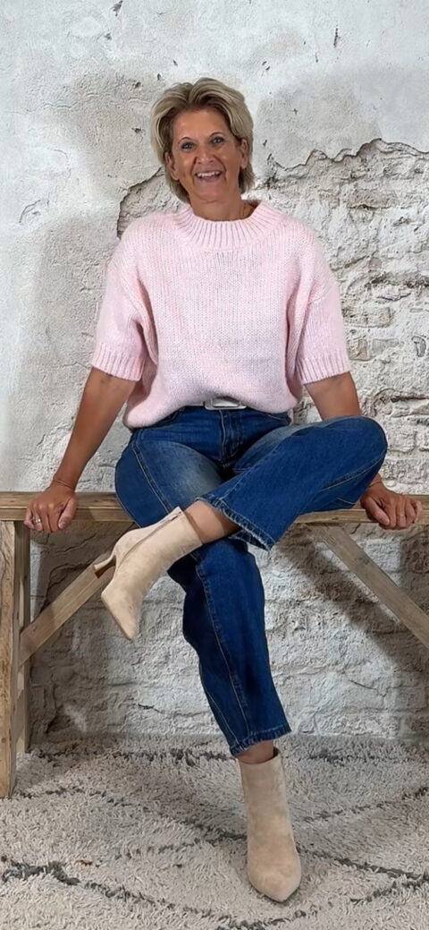 De Evy pullover met wol is een stijlvolle knit met korte mouw, perfect voor het nieuwe seizoen. Het model heeft een brede boord aan de hals en is gebreid in een grove patentsteek, wat de trui een stoere en tegelijkertijd vrouwelijke uitstraling geeft.