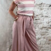 Het Evy streep shirt kapmouw is een fijne basic met een speelse twist door de brede strepen. De combinatie van oudroze en crème geeft het shirt een zachte en vrouwelijke uitstraling.