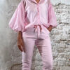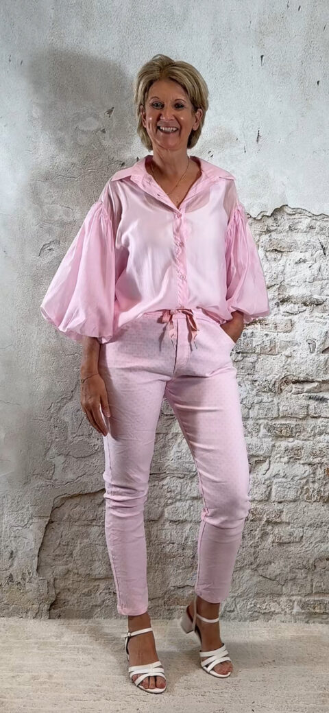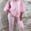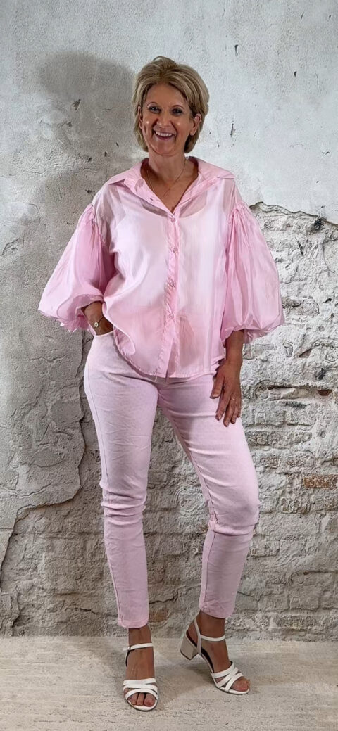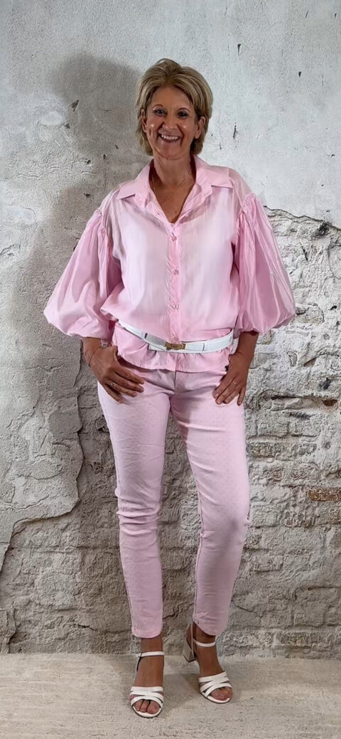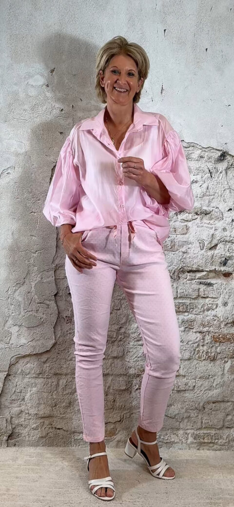 De Evy transparant blouse ballonmouw in roze is vrouwelijk, luchtig en stijlvol. De licht doorschijnende stof geeft een elegante uitstraling, terwijl de wijde pofmouwen zorgen voor een speels en modieus silhouet. Dit is zo’n blouse die direct opvalt door haar zachte, verfijnde look.