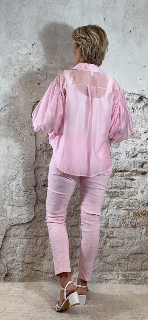 164036. Evy transparant blouse ballonmouw roze LAATSTE!