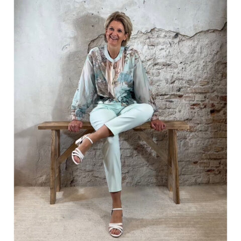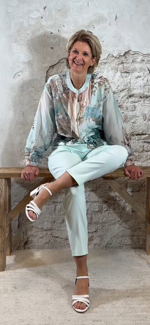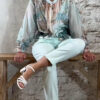 De Evy transparant blouse/jack met bloemenprint in menthol is een vrouwelijk en veelzijdig item dat je zowel als blouse als licht jasje kunt dragen. De stof valt soepel en licht en geeft een elegante, luchtige uitstraling. De bloemenprint zorgt voor een zachte, rustige look die perfect past bij het voorjaar en de zomer.