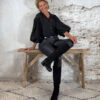 De doorknoopsluiting met kraag en de sierlijke 3/4 ballonmouwen geven de blouse een chique touch. Perfect om zowel casual op een jeans te dragen als feestelijk te combineren met een rok of pantalon.