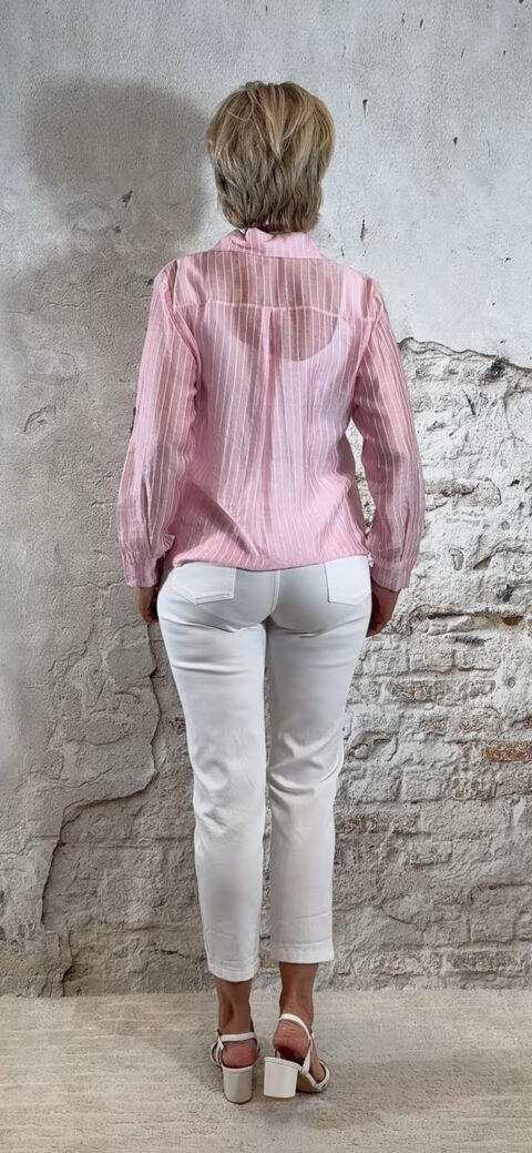 De Evy transparant blouse streep is een verfijnde, vrouwelijke blouse met een lichte en luxe uitstraling. Het subtiele streepje in combinatie met de lichtdoorschijnende stof geeft deze blouse een elegante look die perfect past bij het voorjaar en de zomer.