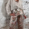 Deze broek combineert perfect met de Evy waterval top print voor een complete set, maar staat ook mooi met de Mousseline doorknoop blouse/jurk zand of met een elastische gouden riem.
