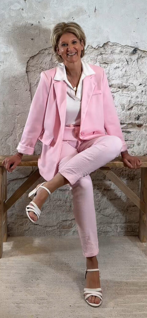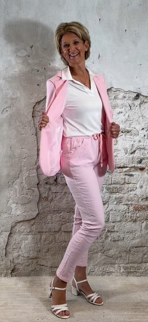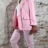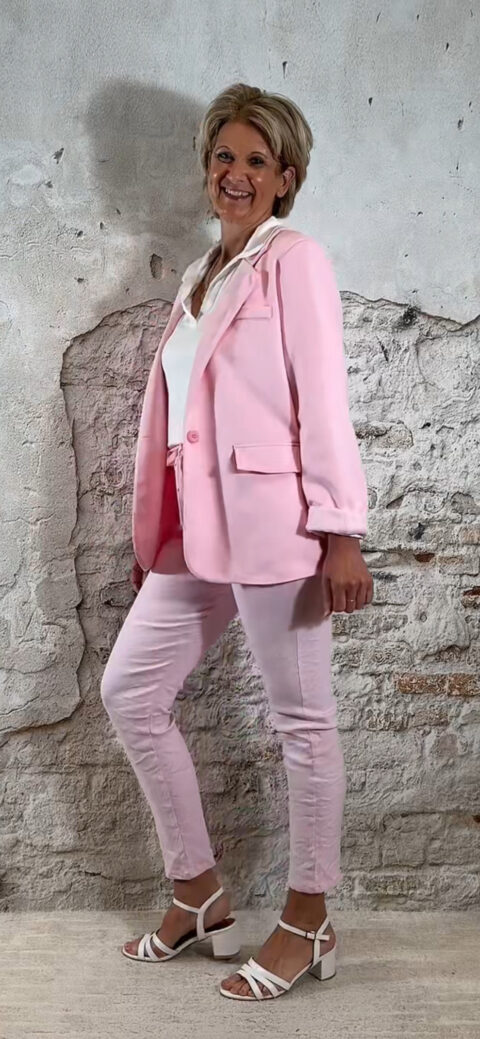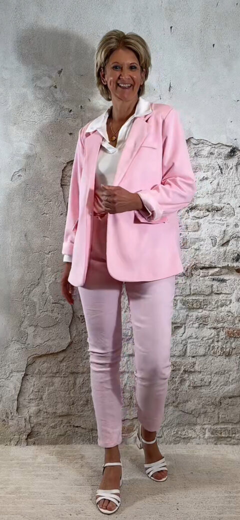 Perfect om casual te combineren op een jeans of chic te dragen over een blouse of top. Deze lichtroze tint geeft elke outfit een zachte, frisse touch.