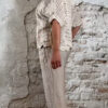 De vlindermouwen vallen tot de elleboog en zorgen voor een luchtig en vrouwelijk effect. De onderzijde is afgewerkt met een schulprandje, wat het geheel een zachte en elegante afwerking geeft.