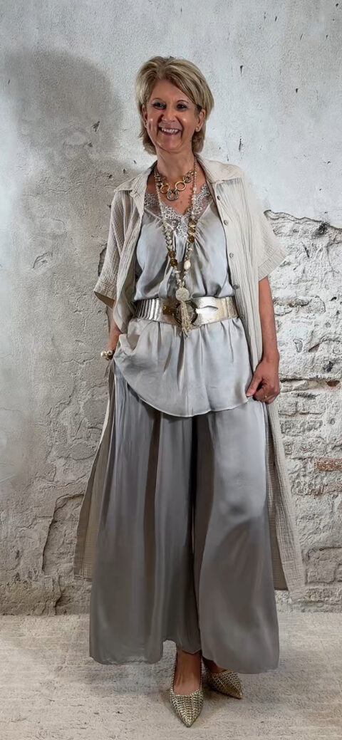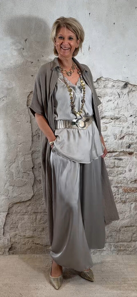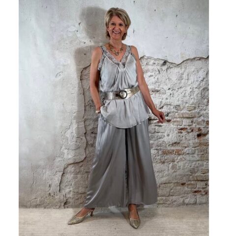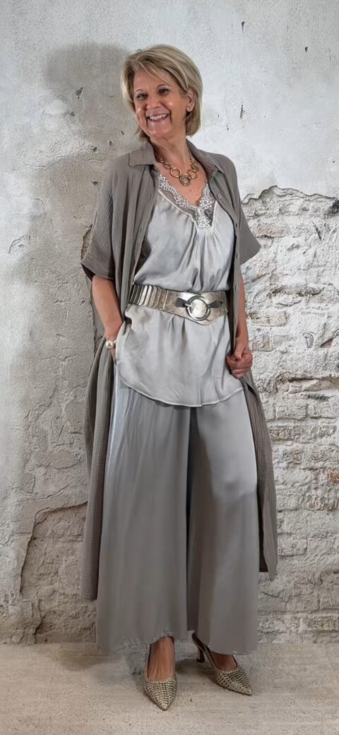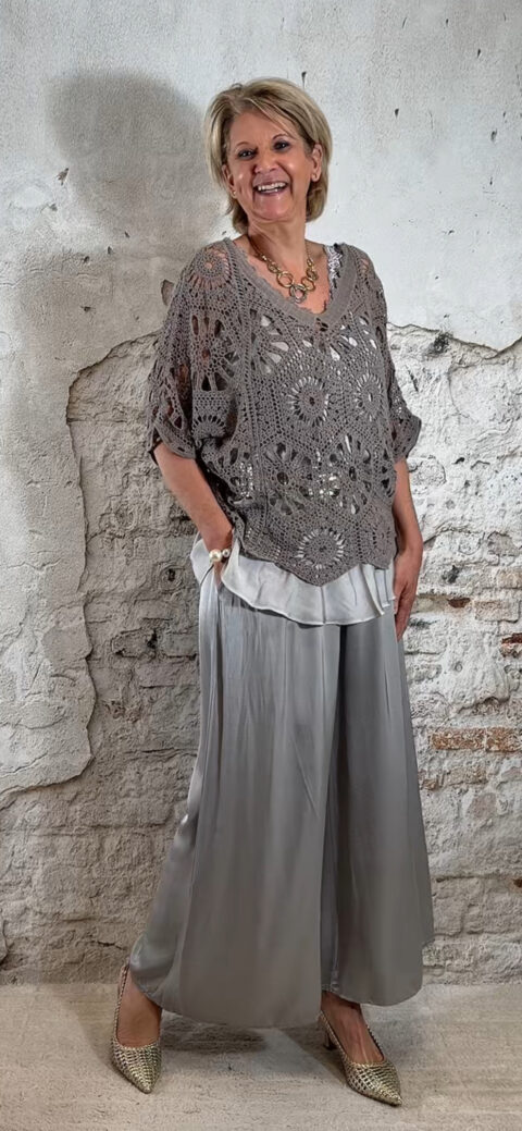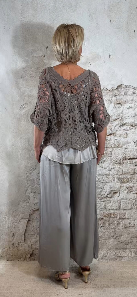 Deze top is perfect als basis onder verschillende outfits en combineert bijvoorbeeld prachtig met: de bijpassende broek in taupe/grijs.
