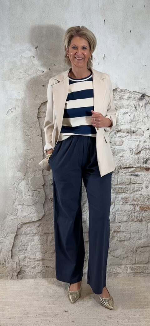 Mooi te combineren met de Lino wijde broek donkerblauw voor een zachte en stijlvolle outfit.
