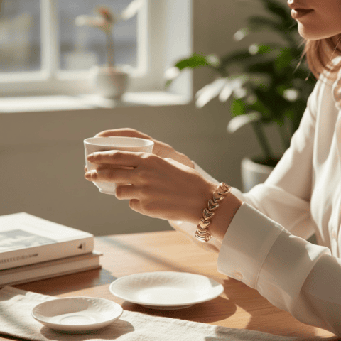 Dankzij het elastiek is de armband eenvoudig om en af te doen en heb je geen sluiting nodig. Hij zit comfortabel om de pols en voelt licht aan, waardoor hij prettig draagt van ’s ochtends tot ’s avonds. De kwaliteit is mooi stevig en de goudkleur zorgt voor een tijdloze uitstraling.