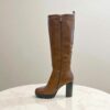 De stevige hak wordt gecombineerd met een plateauzool, waardoor de hak minder hoog aanvoelt en je prettiger loopt. De grove zool zorgt voor extra grip en geeft de laars een moderne uitstraling.