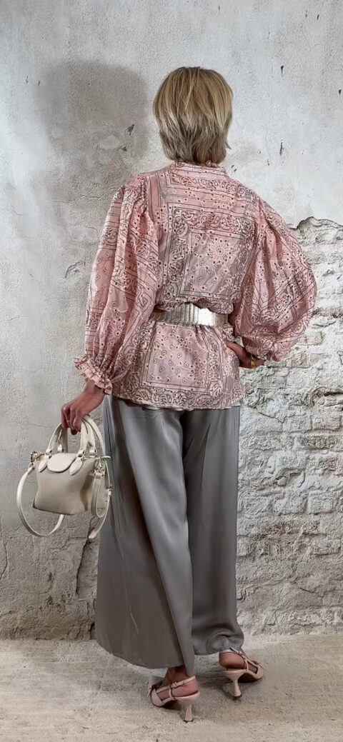De paisley print in lichtroze tinten geeft een echte ibiza vibe en maakt deze blouse perfect voor zonnige dagen, vakanties of een dagje weg.